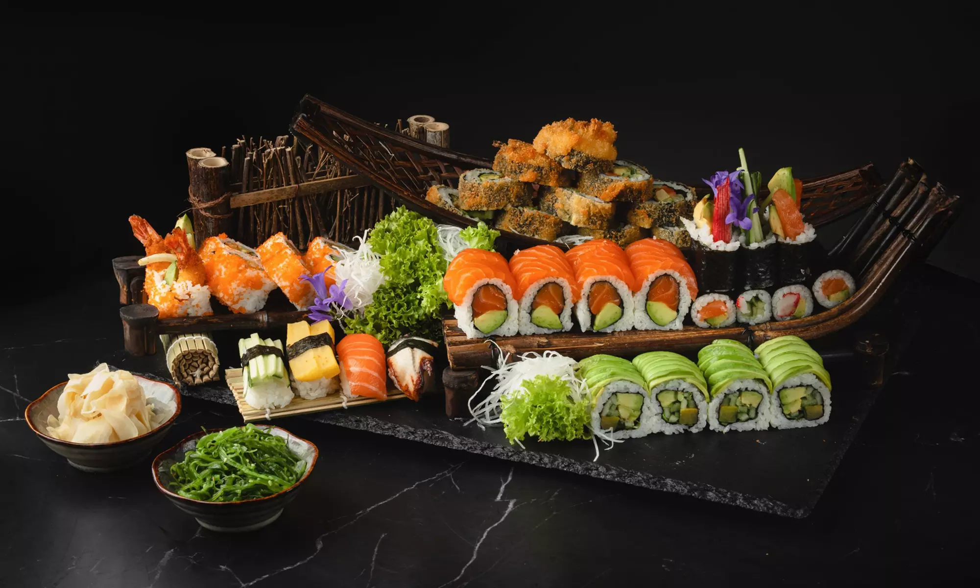 - Sushi – Maki Plate with Salmon: 8 pieces of salmon maki, 8 pieces of salmon and avocado maki