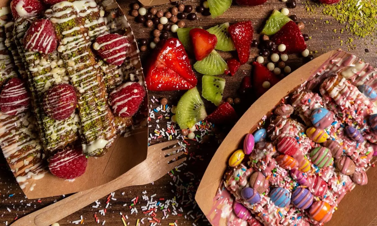 • Churros: 1 filling, 2 sauces, 1 fruit and 2 toppings each