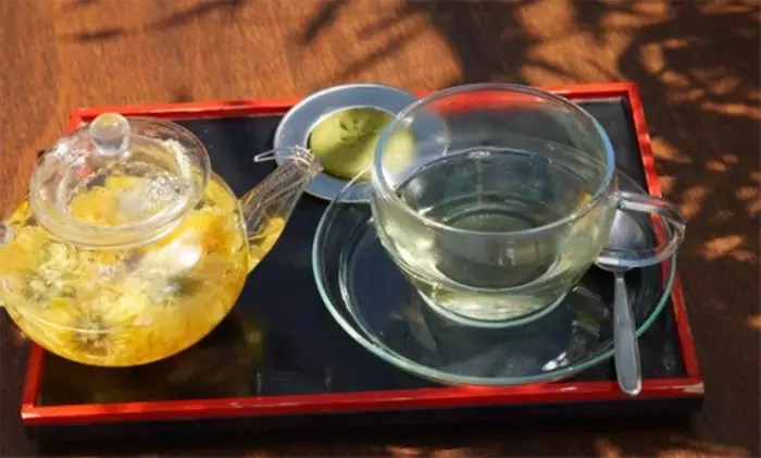 - Japanese green tea, served in 2 teapots, each with 3 infusions.