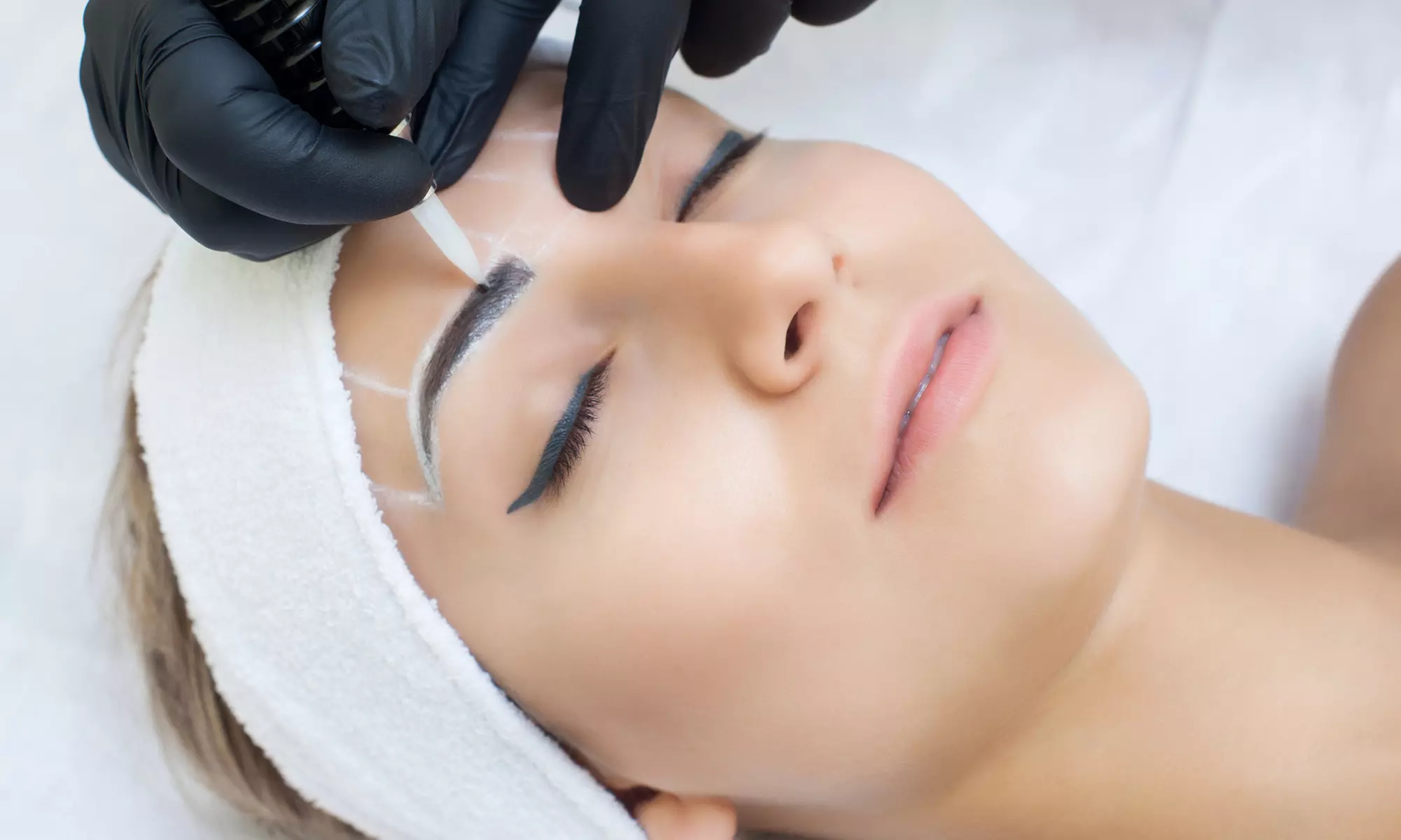 During the eyebrow treatment, small strokes in the shape of hairs are pigmented according to conventional makeup techniques.